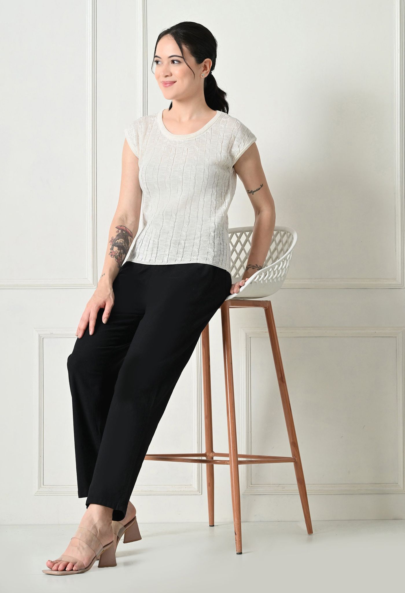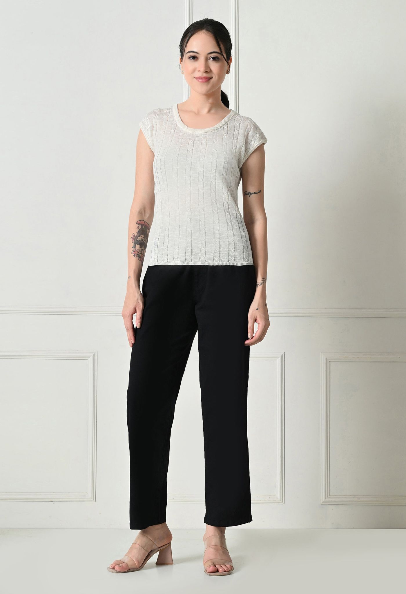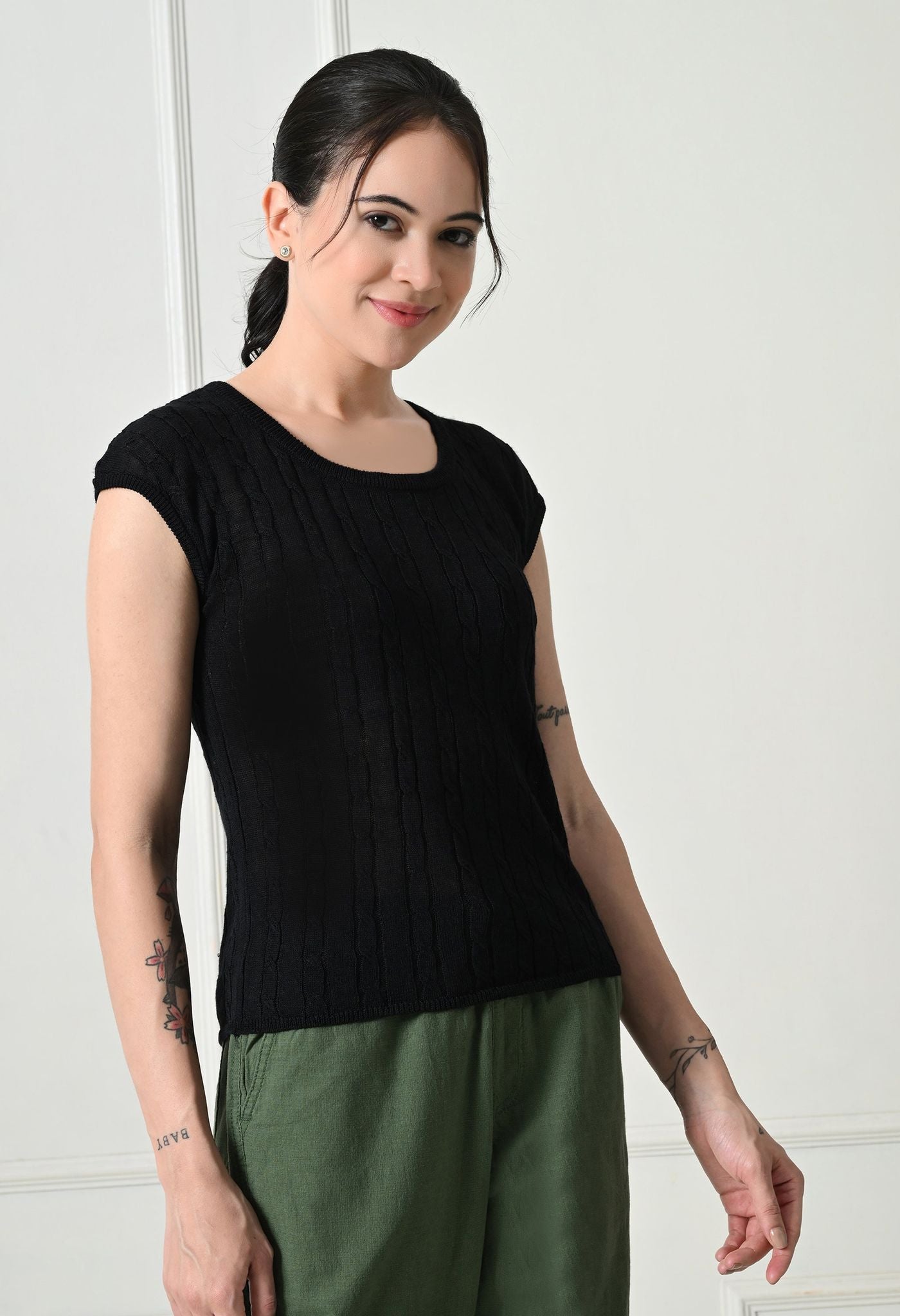 Soft, airy, and quietly elegant — the Light Cable Knit Cap Sleeve Top is crafted for effortless comfort with timeless appeal. Made from a breathable, lightweight knit, it features a delicate cable texture and a natural tone that pairs seamlessly with everything.