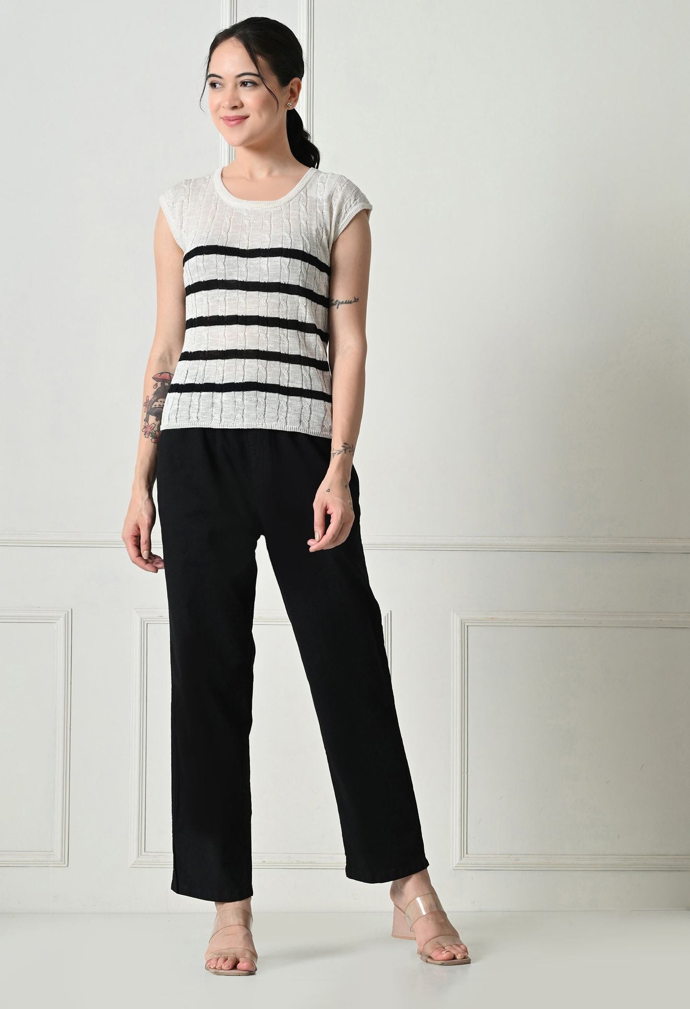 Crafted from a breathable knit fabric, it offers a light, cozy feel perfect for transitional weather. Whether you're styling it with trousers, denim, or skirts, this top brings a relaxed charm to your wardrobe—ideal for both casual outings and cozy indoor days.